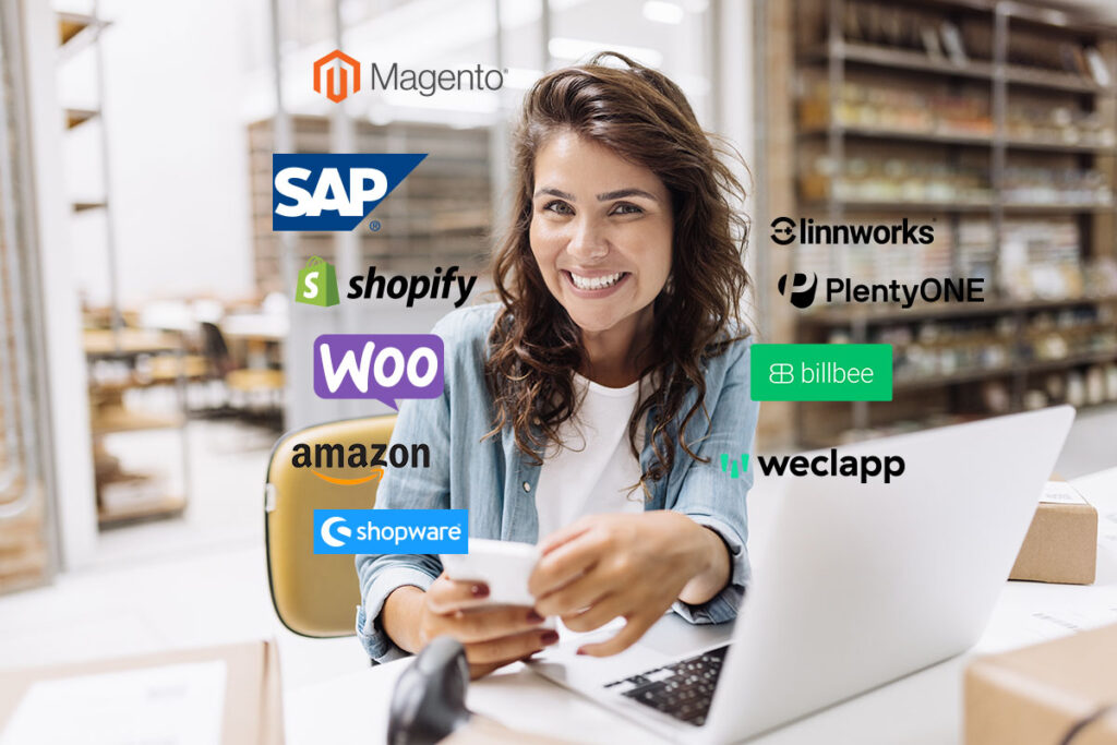 - Anbindung an alle gängigen Shopsysteme: Shopify, Shopware, WooCommerce, billbee, Magento, u. v. m.